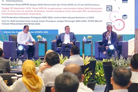 Dalam paparannya, Asnaedi menjelaskan bahwa saat ini pemerintah tengah menyesuaikan sejumlah regulasi pertanahan sebagai respons atas perubahan kebijakan dan kebutuhan tata kelola di era pemerintahan yang baru. Beberapa peraturan telah direvisi maupun disempurnakan, di antaranya Peraturan Pemerintah (PP) yang berkaitan dengan pengelolaan dan administrasi pertanahan.