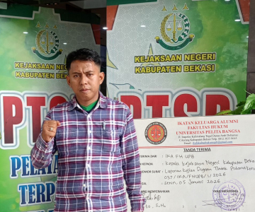 Fakta Bekasi, KABUPATEN BEKASI–Sekretaris Ikatan Keluarga Alumni Fakultas Hukum Universitas Pelita Bangsa (IKA FH UPB), Riyanto, S.H. resmi melaporkan dugaan tindak pidana korupsi atas berkurangnya tanah kas Desa Karang Baru ke Kejaksaan Negeri Kabupaten Bekasi.